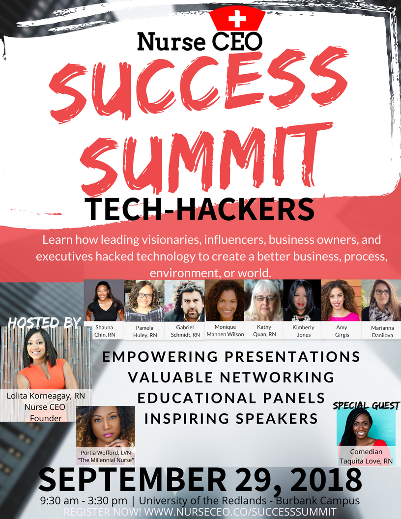I’m excited to be a speaker at the Nurse CEO Success Summit in Los Angeles on September 29, 2018! The event will bring business experts together to share how they have hacked technology to create a better business, process, environment, or world! All entrepreneurs are welcome to come! I hope to see you there. http://www.nurseceo.co/successsummit